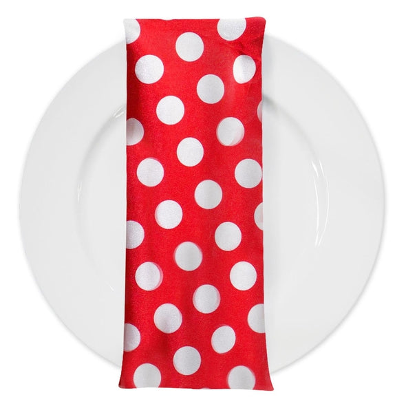 Satin Polka Dot Table Napkin in White and Red