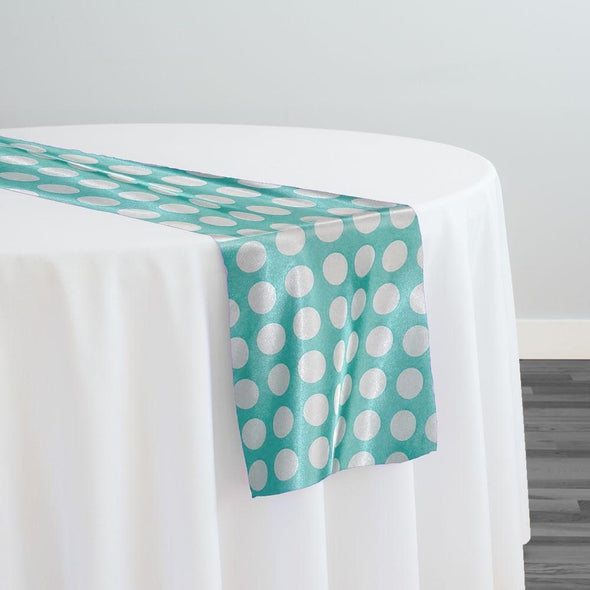 Satin Polka Dot Table Runner in White and Teal Green