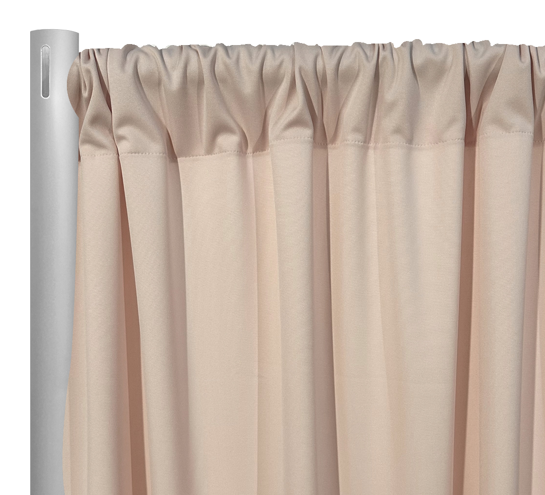 SIZE OPTIONS: Select your desired panel height above. Panels are approx. 58" wide and come standard with a 4" Rod Pocket on top. You can add a bottom Rod Pocket for an additional $5.00 per panel. Our drapes will work on any of our Pipe & Drape systems. Contact us at 800-590-9508 for custom sizing.