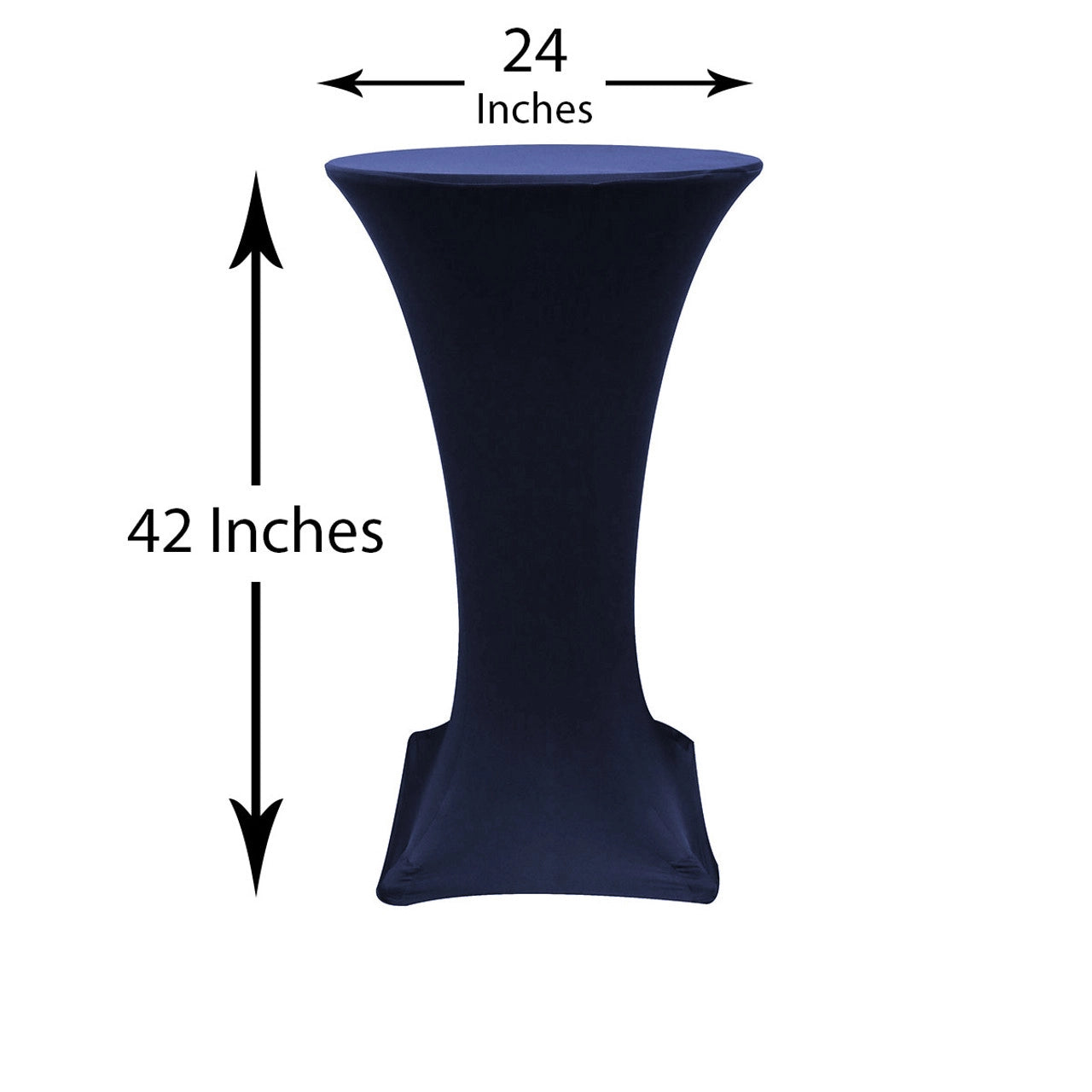 Our durable spandex chair covers fit standard 24"x42" Highboy Tables (24" Round x 42" Tall w/ 4 Leg Base). They're made from high quality spandex with a 4-way stretch so they're easy to put on and made to last. They're also made with durable elastic foot pockets which help secure the cover in place, ensure a great fit, and help prevent damage and excess wear and tear. These covers are a perfect way to improve the look of your chair covers and ideal for rental companies, banquet halls, hotels, various venues and special events.