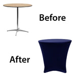 Our durable spandex chair covers fit standard 30"x30" Lowboy Tables (30" Round x 30" Tall w/ 4 Leg Base). They're made from high quality spandex with a 4-way stretch so they're easy to put on and made to last. They're also made with durable elastic foot pockets which help secure the cover in place, ensure a great fit, and help prevent damage and excess wear and tear. These covers are a perfect way to improve the look of your chair covers and ideal for rental companies, banquet halls, hotels, various venues and special events.