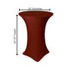 Our durable spandex chair covers fit standard 30"x42" Highboy/Cocktail Tables (30" Round x 42" Tall w/ 4 Leg Base). They're made from high quality spandex with a 4-way stretch so they're easy to put on and made to last. They're also made with durable elastic foot pockets which help secure the cover in place, ensure a great fit, and help prevent damage and excess wear and tear. These covers are a perfect way to improve the look of your chair covers and ideal for rental companies, banquet halls, hotels, various venues and special events.
