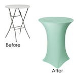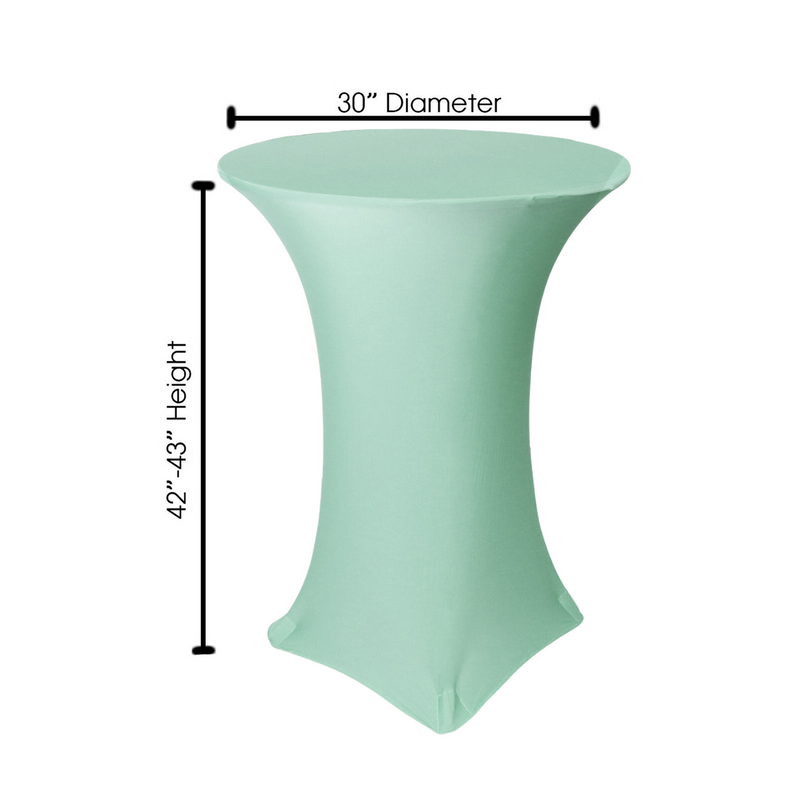 Our durable spandex chair covers fit standard 30"x42" Highboy/Cocktail Tables (30" Round x 42" Tall w/ 4 Leg Base). They're made from high quality spandex with a 4-way stretch so they're easy to put on and made to last. They're also made with durable elastic foot pockets which help secure the cover in place, ensure a great fit, and help prevent damage and excess wear and tear. These covers are a perfect way to improve the look of your chair covers and ideal for rental companies, banquet halls, hotels, various venues and special events.
