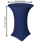 Our durable spandex chair covers fit standard 32"x42" Highboy Tables (32" Round x 42" Tall w/ 4 Leg Base). They're made from high quality spandex with a 4-way stretch so they're easy to put on and made to last. They're also made with durable elastic foot pockets which help secure the cover in place, ensure a great fit, and help prevent damage and excess wear and tear. These covers are a perfect way to improve the look of your chair covers and ideal for rental companies, banquet halls, hotels, various venues and special events.