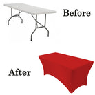 Our durable spandex chair covers fit standard 6' Banquet Tables (5' Length x 30" Depth x 30" Tall). They're made from high quality spandex with a 4-way stretch so they're easy to put on and made to last. They're also made with durable elastic foot pockets which help secure the cover in place, ensure a great fit, and help prevent damage and excess wear and tear. These covers are a perfect way to improve the look of your chair covers and ideal for rental companies, banquet halls, hotels, various venues and special events.