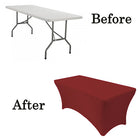 Our durable spandex chair covers fit standard 6' Banquet Tables (6' Length x 30" Depth x 30" Tall). They're made from high quality spandex with a 4-way stretch so they're easy to put on and made to last. They're also made with durable elastic foot pockets which help secure the cover in place, ensure a great fit, and help prevent damage and excess wear and tear. These covers are a perfect way to improve the look of your chair covers and ideal for rental companies, banquet halls, hotels, various venues and special events.
