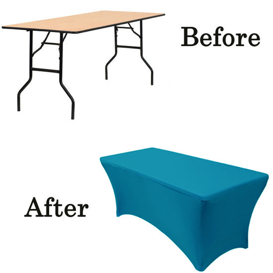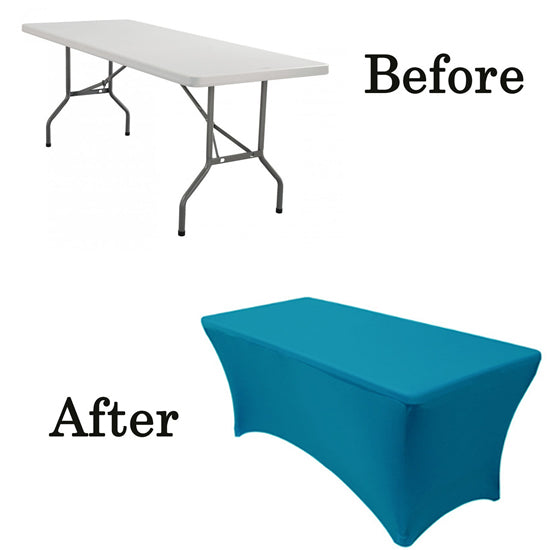 Our durable spandex chair covers fit standard 6' Banquet Tables (6' Length x 30" Depth x 30" Tall). They're made from high quality spandex with a 4-way stretch so they're easy to put on and made to last. They're also made with durable elastic foot pockets which help secure the cover in place, ensure a great fit, and help prevent damage and excess wear and tear. These covers are a perfect way to improve the look of your chair covers and ideal for rental companies, banquet halls, hotels, various venues and special events.