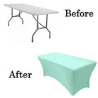 Our durable spandex chair covers fit standard 6' Banquet Tables (6' Length x 30" Depth x 30" Tall). They're made from high quality spandex with a 4-way stretch so they're easy to put on and made to last. They're also made with durable elastic foot pockets which help secure the cover in place, ensure a great fit, and help prevent damage and excess wear and tear. These covers are a perfect way to improve the look of your chair covers and ideal for rental companies, banquet halls, hotels, various venues and special events.