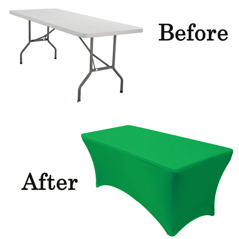Our durable spandex chair covers fit standard 8' Banquet Tables (8' Length x 30" Depth x 30" Tall). They're made from high quality spandex with a 4-way stretch so they're easy to put on and made to last. They're also made with durable elastic foot pockets which help secure the cover in place, ensure a great fit, and help prevent damage and excess wear and tear. These covers are a perfect way to improve the look of your chair covers and ideal for rental companies, banquet halls, hotels, various venues and special events.