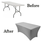 Our durable spandex chair covers fit standard 8' Banquet Tables (8' Length x 30" Depth x 30" Tall). They're made from high quality spandex with a 4-way stretch so they're easy to put on and made to last. They're also made with durable elastic foot pockets which help secure the cover in place, ensure a great fit, and help prevent damage and excess wear and tear. These covers are a perfect way to improve the look of your chair covers and ideal for rental companies, banquet halls, hotels, various venues and special events.