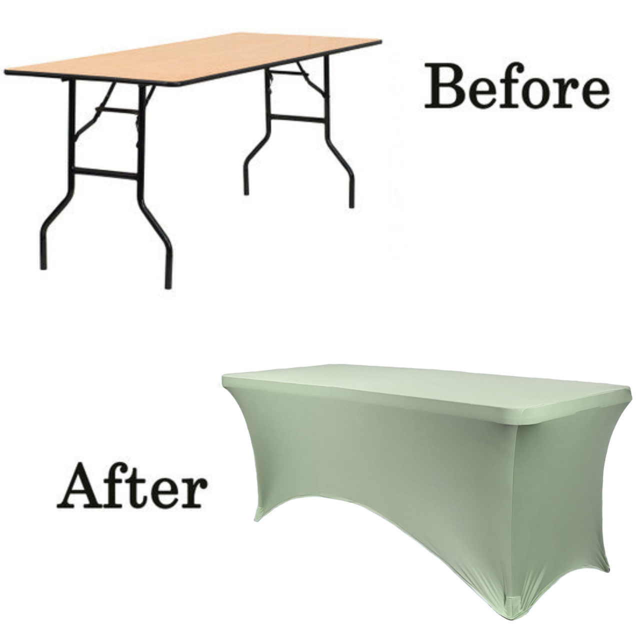 Our durable spandex chair covers fit standard 8' Banquet Tables (8' Length x 30" Depth x 30" Tall). They're made from high quality spandex with a 4-way stretch so they're easy to put on and made to last. They're also made with durable elastic foot pockets which help secure the cover in place, ensure a great fit, and help prevent damage and excess wear and tear. These covers are a perfect way to improve the look of your chair covers and ideal for rental companies, banquet halls, hotels, various venues and special events.