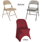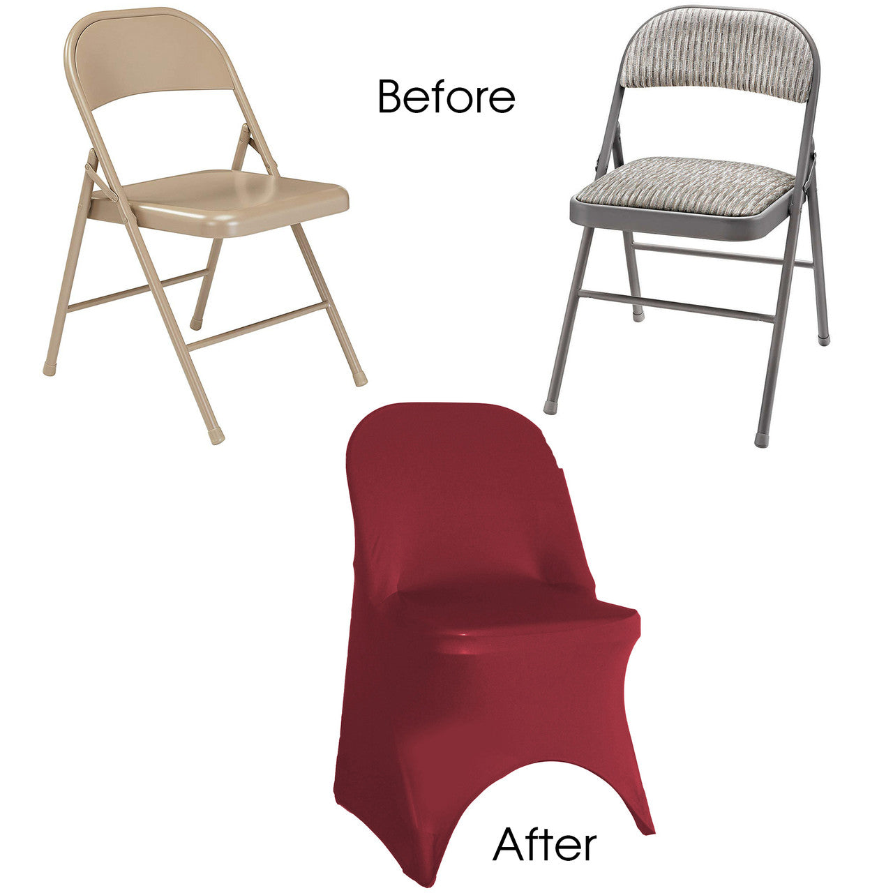 Our durable spandex chair covers fit almost all industry standard folding chairs. They're made from high quality spandex with a 4-way stretch so they're easy to put on and made to last. They're also made with durable elastic foot pockets which help secure the cover in place, ensure a great fit, and help prevent damage and excess wear and tear. These covers are a perfect way to improve the look of your chair covers and ideal for rental companies, banquet halls, hotels, various venues and special events.