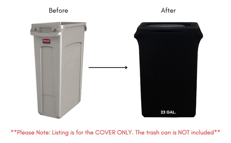 Spandex Trash Can Covers offer a great way to transform old and worn trash cans by providing an elegant and clean look. They're easy to put-on/take-off and are made from our durable spandex material. They fit standard 23-gallon (Slim Jim) trash cans and are perfect for special event, conference centers, tradeshows, concerts, and many other functions.