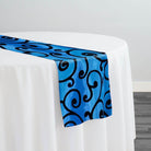 Swirl Flocking Taffeta Table Runner in Black on Royal