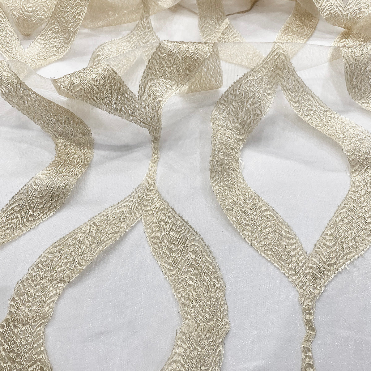 Fabric Collection: This fabric is a sheer Jacquard embroidery in our "Tabriz" design.
