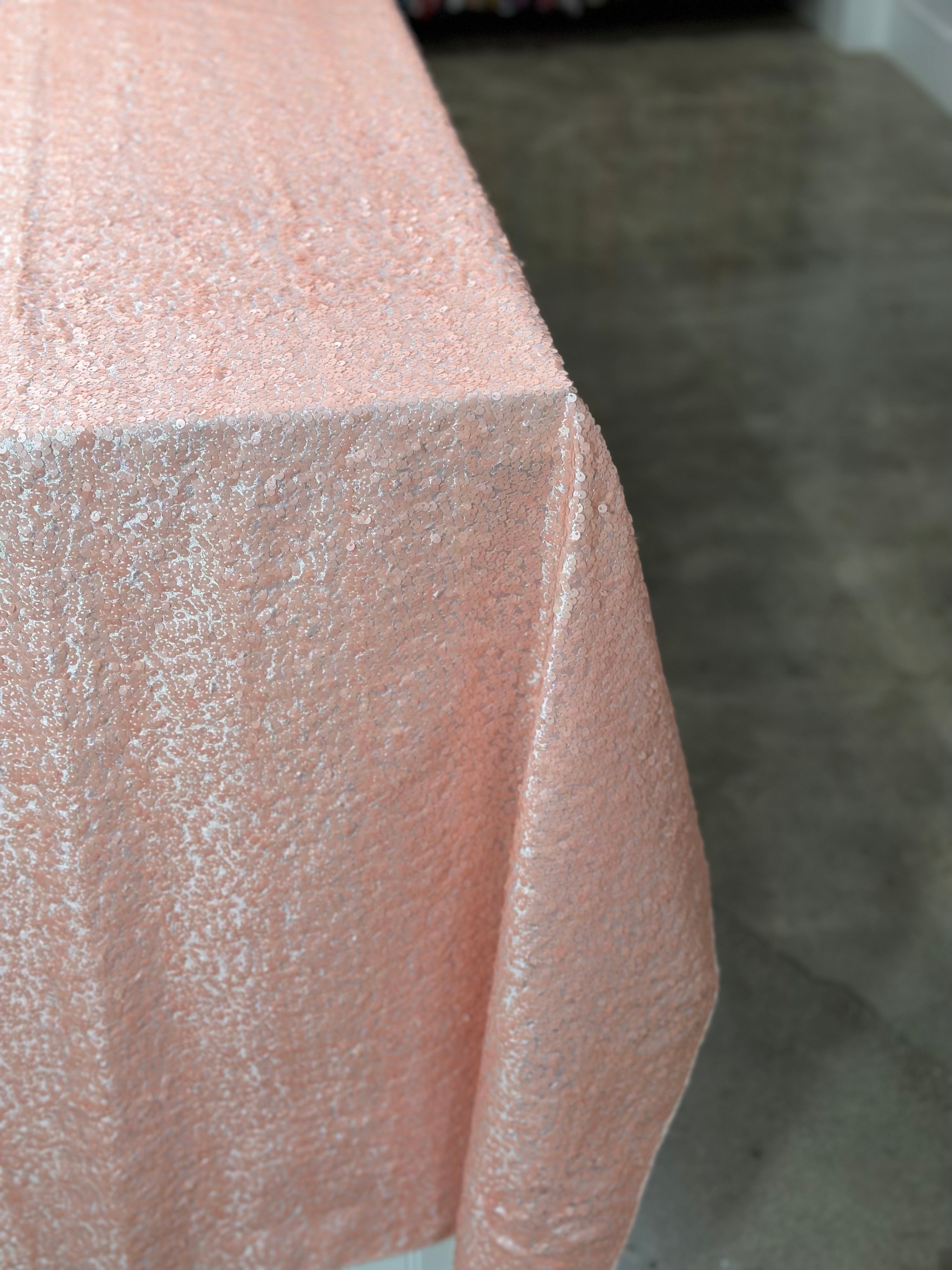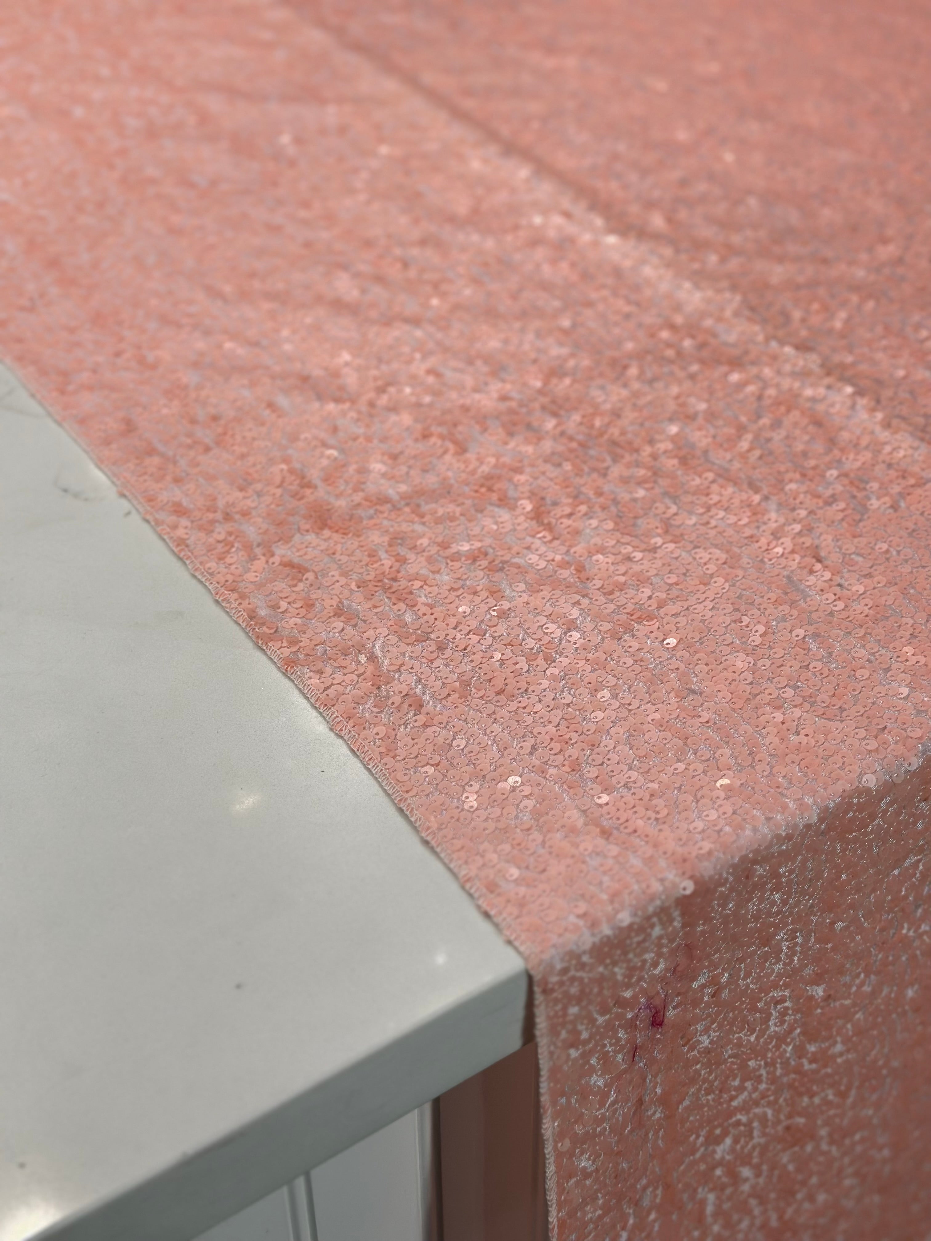 Table linen sizes that exceed the width of the fabric will have seams. All seams are sewn with 5 thread overlock sergers for long lasting durability.