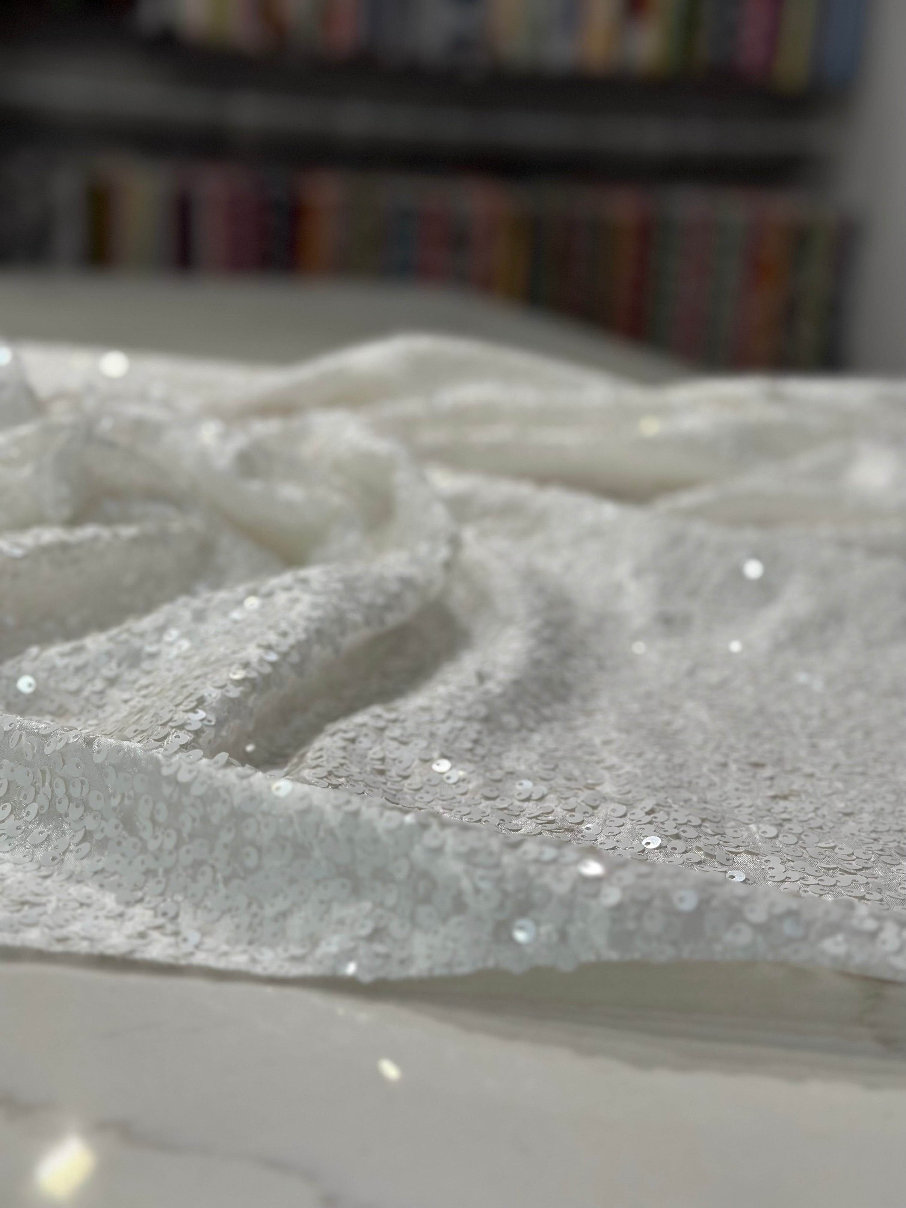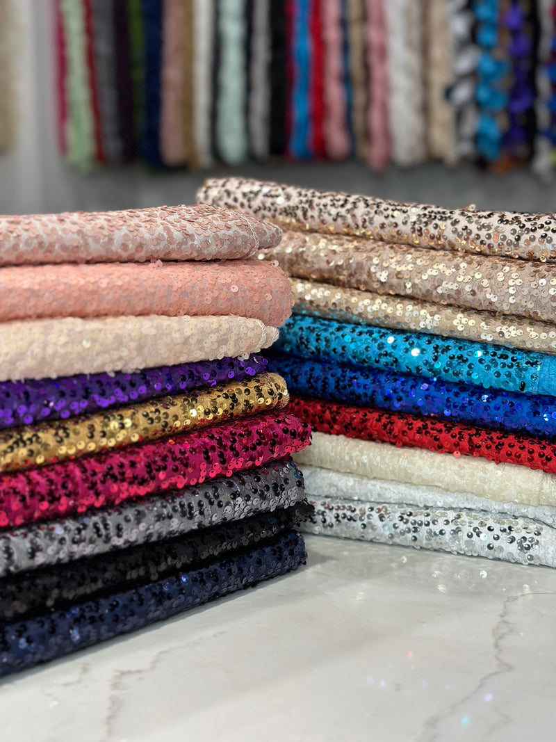 Fabric Collection: This fabric has a solid taffeta base w/ sequins embroidered all over.