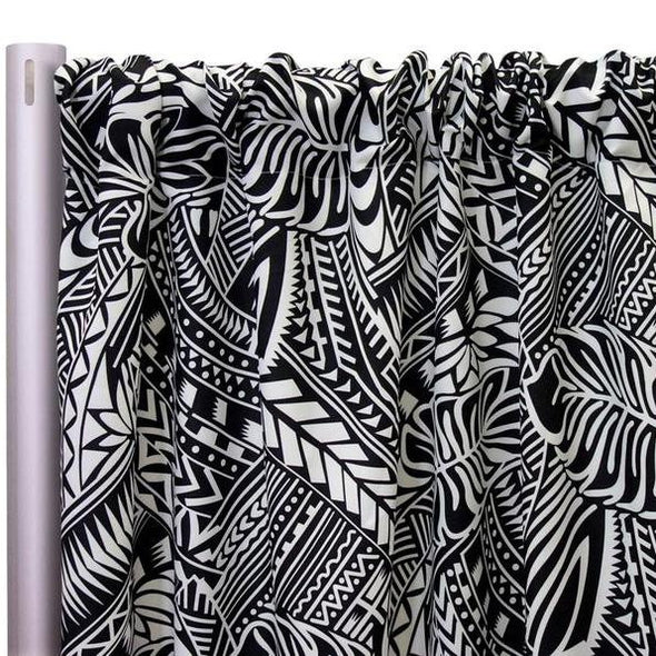 This fabric is a Polyester base with our "Tribal Retro" print throughout.