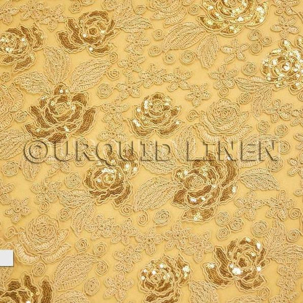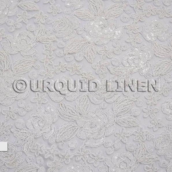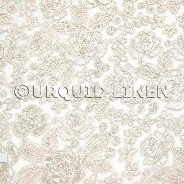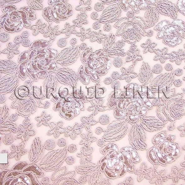 Fabric Collection: This fabric is a sheer lace material that has a beautiful floral embroidery w/ sequins in the design throughout the fabric.