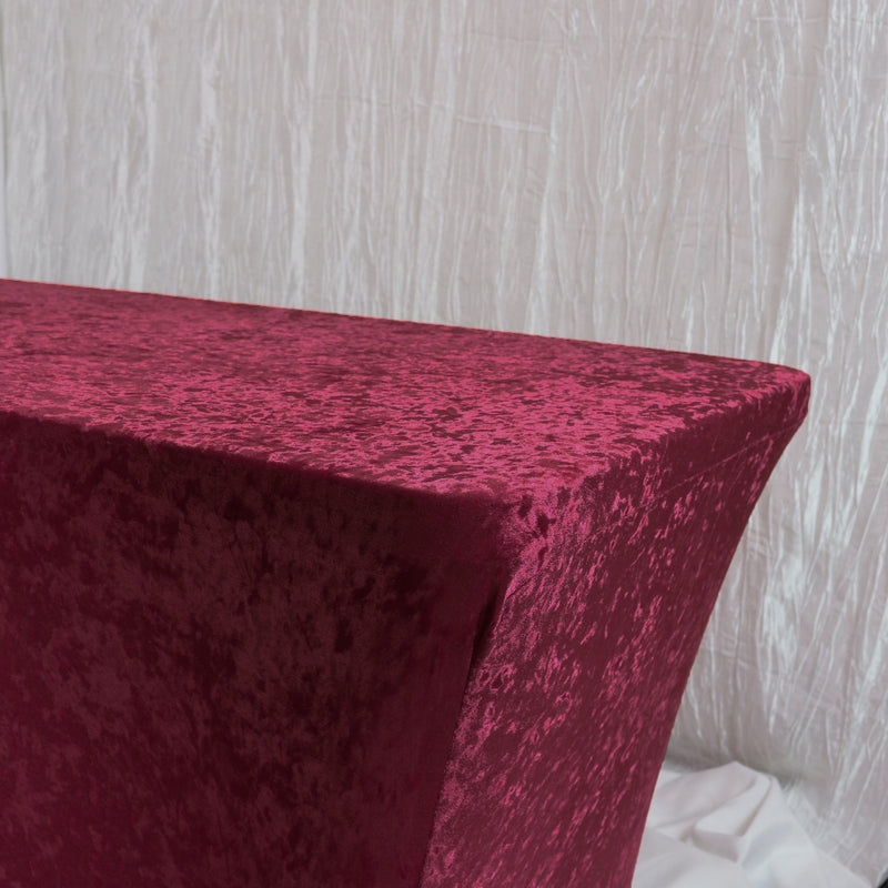 Velvet Spandex (8'x30") Banquet Table Cover in Burgundy