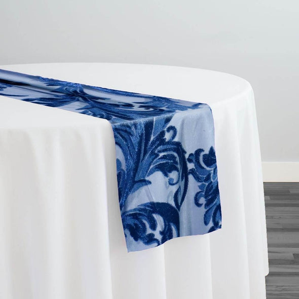 Victorian Jacquard Sheer Table Runner in Navy