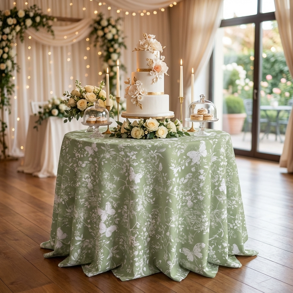 Used by event rental companies, hotels, and restaurants, this printed linen fabric is ideal for weddings, garden parties, and special occasions—offering lasting quality, graceful drape, and a refined designer look.
