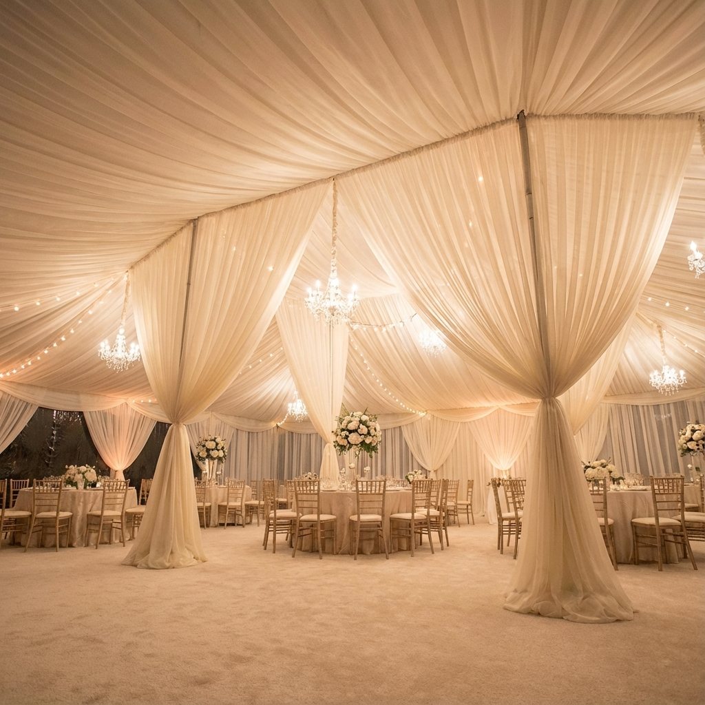 • All table linen (tablecloths, overlays, napkins runners, skirting etc),